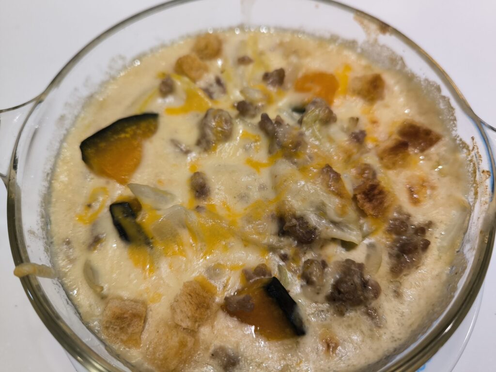 今日のおつまみは【挽肉とカボチャのグラタン】です。