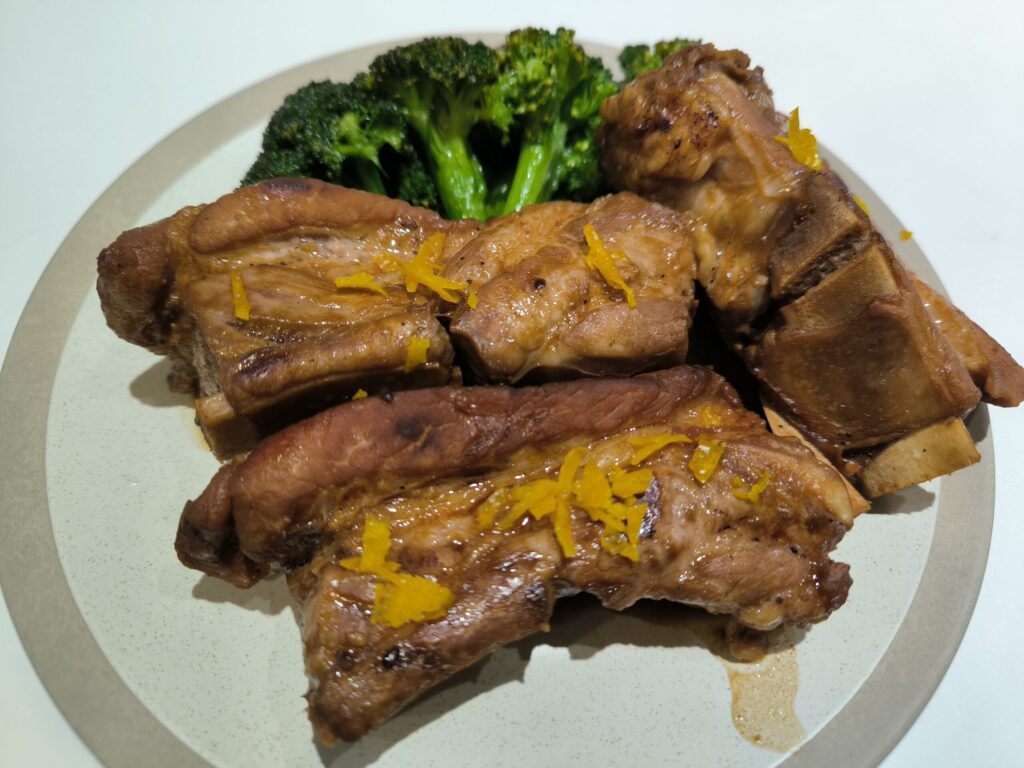 焼肉のタレやハチミツなどで一日つけ置いた骨付き豚肉を、