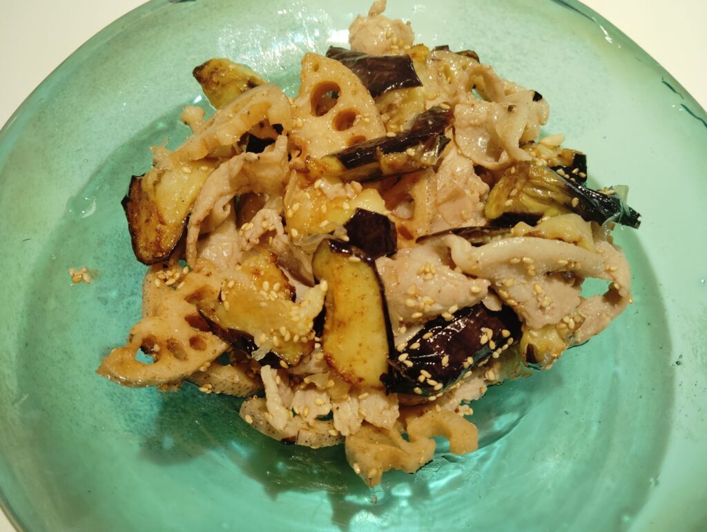豚バラのビタミンと茄子や蓮根の食物繊維。